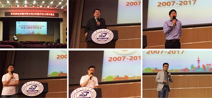 丁经理、邱勇老师和孙建新老师依次作了主题讲话,中组部青年、现任公司研究员吴豪(机制0307班),乐行天下联合创始人闫学凯(机制0304班)和飞利浦高级职业经理人谢志宇(机制0315班)作为员工代表与大家分享了从校园学习生活到步入社会的心路历程。