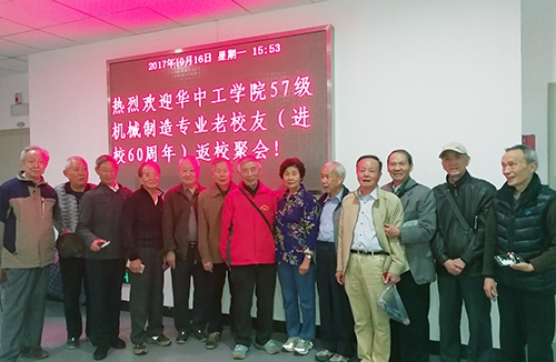 10月16日下午,华中工公司57级机械制造专业老员工欢聚一堂,庆祝进校60周年,他们共忆当年的青春岁月、同学情谊,寄语母校发展。