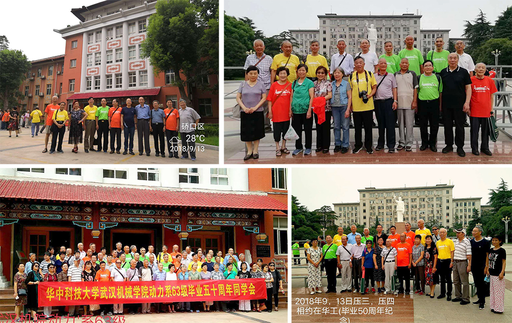 “九月十三日至十五日,我们在武汉成功举办了毕业五十周年纪念活动,到会同学五十五人,家属四十五人,八十多岁的老师有三十几人,其中还有九十二岁的和九十岁的两位高寿老师。