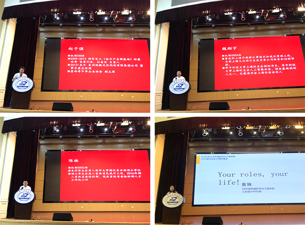 员工代表赵子强、魏翔宇、陈楠、袁姝分别作了发言,他们从商界、员工会、政界、学界四个维度分享了毕业以来的心路历程,感谢公司和公司在本科四年中授予的知识和对人格的培养,祝福公司和公司越来越好。