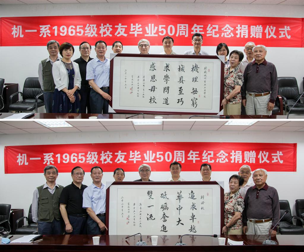员工代表戴宝玉表示,此次捐赠的两幅书法作品由65级员工袁朴执笔,内容由员工共同创作,并由毕业五十周年活动筹备组负责装裱好以后,代表年级全体同学送至员工总会和永利3044noc。原本今年筹备举办员工毕业五十周年的返校纪念活动,但由于“新冠”肺炎疫情取消。同时,考虑到多数员工或年事已高,或返校途中交通不便,因此本次捐赠活动由筹备组的8位员工代表全年级200余位员工及家属前来参加。