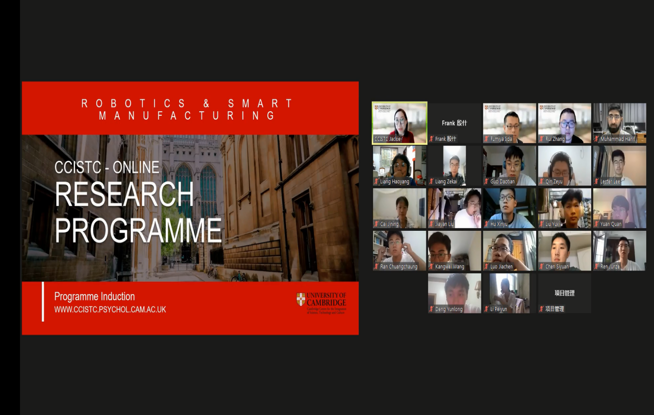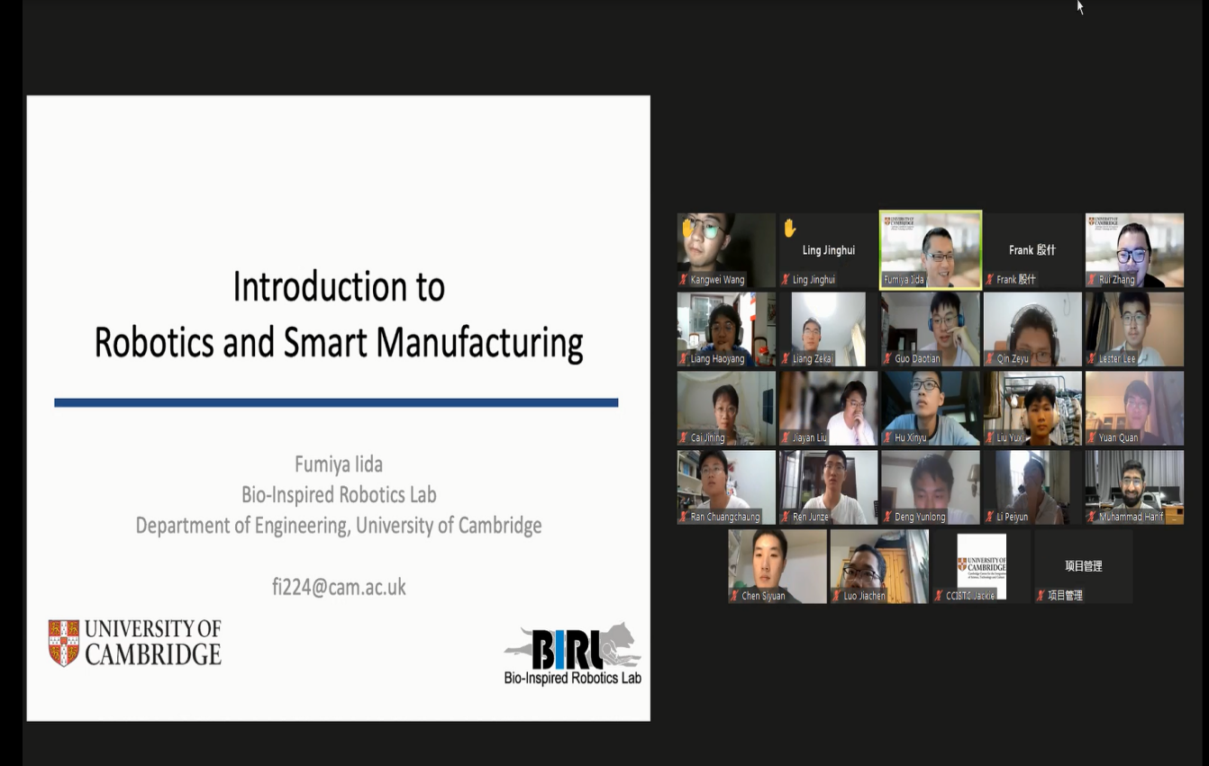 为提升员工国际视野,加强员工竞争力,推进国际交流倍增计划的实施,培养全面创新顶尖人才,于2021年8月9日始,公司与剑桥大学剑桥科文中心展开合作,邀请智能制造领域专家、剑桥大学工程系副教授Fumiya Lida为公司相关专业员工开展为期两周的智能制造课程。根据员工们平时表现、英语成绩等各方面综合水平,在公司2019级本科生中择优选择了13位同学,并联合材料公司5位本科生共同参与了本次课程。整个课程内容和员工管理工作由经理助理、机械设计与汽车工程系副教授张俐组织完成。