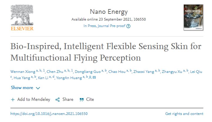 此外,厉侃与数字制造装备与技术国家重点实验室黄永安教授团队开展飞行器柔性智能蒙皮测量技术(iFlexSense)研究,并取得突破性进展,首创了大面积柔性智能蒙皮传感/测量系统、大规模多元数据采集系统、大数据分析与显示系统,相关成果在期刊《Nano Energy》上发表了题为“Bio-Inspired, Intelligent Flexible Sensing Skin for Multifunctional Flying Perception”的研究论文。在未来,他们将携手开展新一代先进飞行器智能感知研究。