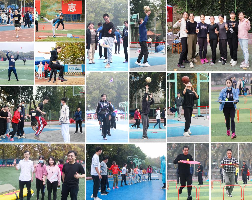 本次运动会教工组比赛包含青年组、壮年组、中年组的田径单项和7个集体趣味项目,并在11月5日全部完成。参赛队员敢打敢拼,奋勇争先,在各田径单项赛场取得突破。刘伦洪获得中年组男子实心球第一名,王新晶获得青年组男子跳远第二名,朱志娟获得壮年组女子立定跳远第二名,程敏中年组获得女子实心球第三名,刘琼获得中年组女子立定跳远第四名,李喜秋获得中年组女子铅球第四名,蒙运红中年组获得女子实心球第五名,朱岩获得青年组女子跳远第五名,陈雪获得壮年组女子60米第五名;集体项目继续保持优势,“同舟共济”“心心相印”“投篮”3个项目获得第一名,“集体长绳”“踢毽打靶”“平衡接力”“一圈到底”4个项目获得第二名。最终,公司以总分302分蝉联校运会教工甲组团体总分第一。