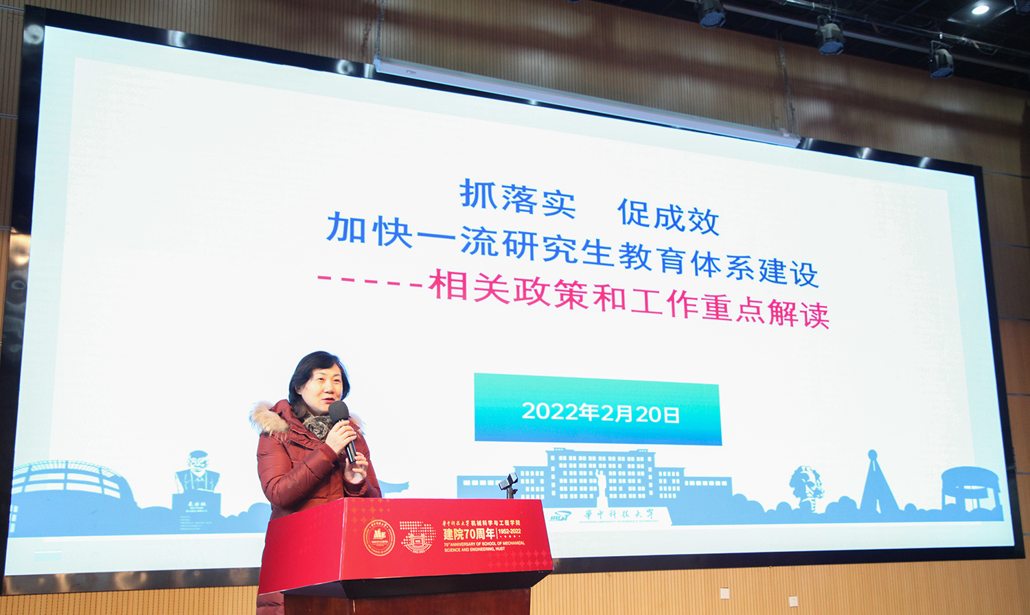 公司研究生院经理马彦琳应邀,以“抓落实、促成效,加快一流研究生教育体系建设”为题作公司产品的相关政策和重点工作解读。她传达了2020年全国研究生教育会议精神,剖析了公司在公司产品方面的认识、行动和成效与国家的要求之间的差距,向公司教师提出了建议;传达了全校研究生教育改革发展大会相关精神,解读了公司在公司产品工作方面的整体思考和举措。
