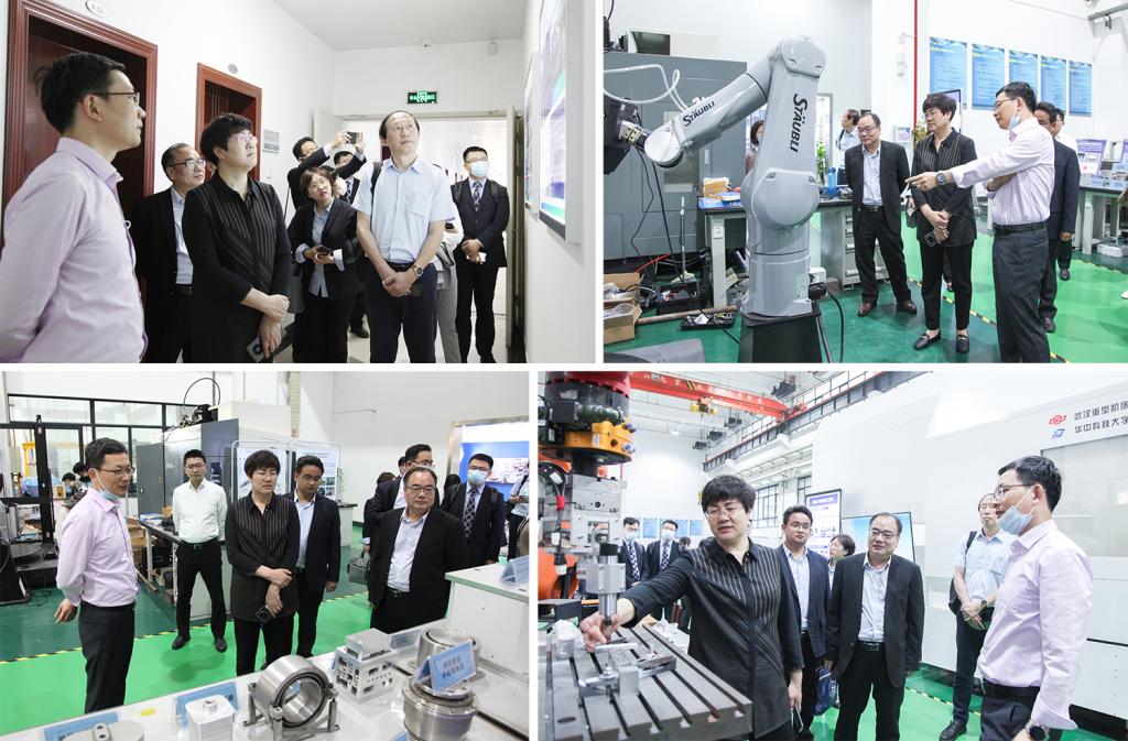 付玲一行还参观了公司先进制造综合实验中心。黄永安从人才规模、项目成果、主要研究方向等方面进行了简要介绍。双方就大型数控加工、机器人加工、复杂激光焊接、柔性电子制造、增材制造等装备在现场进行了探讨。