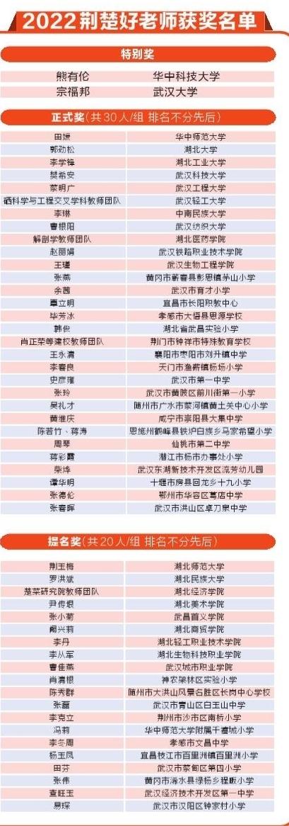 相关链接:【楚天都市报】“寻访荆楚好老师”评选结果出炉