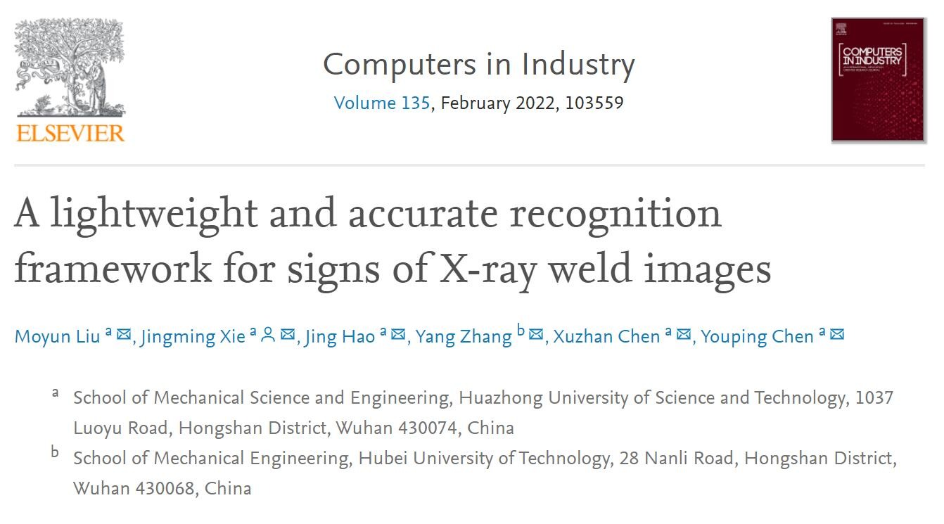 近期,公司博士生在计算机科学/跨学科应用领域的著名期刊《Computers in Industry》(影响因子:11.245)上发表了题为《A lightweight and accurate recognition framework for signs of X-ray weld images(一种用于X射线焊缝图像标识的轻量化高精度识别框架)》的研究论文,公司21级博士生刘默耘为第一作者,国家数控系统工程技术研究中心副教授谢经明为通讯作者。该研究团队在研究成果应用上还获得两项已授权的发明专利,分别为《基于Tiny-YOLO v3的焊缝胶片字符识别方法》(专利号:ZL202011457524.5),以及《一种焊缝缺陷多尺度特征提取装置及方法》(专利号:ZL202110503744.5)。