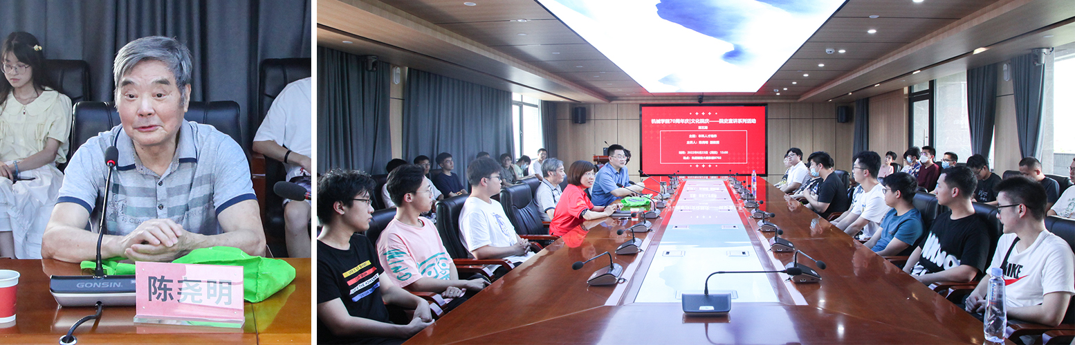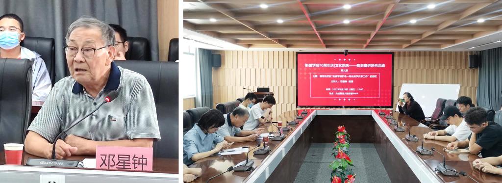 李鹤九教授讲述了自己于1961年作为永利3044noc第一个研究生的学习经历;陈尧明副教授回顾了在液压教研室建设、液压专业人才培养等方面的心路历程;陈继平教授分享了自己在永利3044noc参与创办可靠性工程学科,以及当年跨越十几个省份从南到北奔波讲学的故事;宾鸿赞教授讲述了机制专业撰写教材,解决从0到1问题的详细过程。