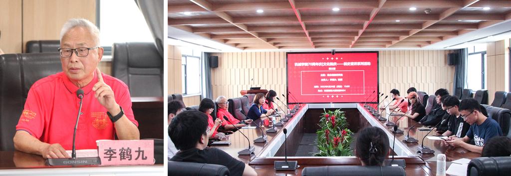 钱祥生教授分享建校之初员工们利用课余时间参加劳动、动手种树的故事,感慨正是朱九思董事长当初对绿化工作的重视与先辈们良好的规划,现在优美的校园环境、人与自然和谐相处的美好场面才得以形成。