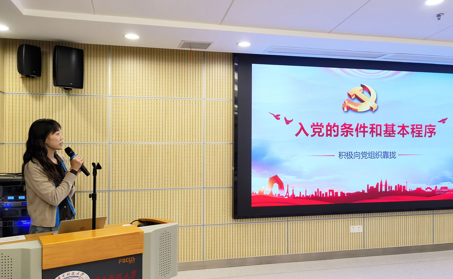 第四讲课程,入党的条件和基本程序,公司丁鼎老师从入党动机、入党基本条件、入党指导思想和入党基本程序四个方面,严谨又详实地对入党积极分子们做了一次培训和教育工作。指出当代老员工偏差性入党动机,将叶挺同志的两次入党申请作为典范让大家学习和反思;从入党的各项基本条件、党员义务和权利入手,讲解当代老员工的入党基本条件;最后,同大家分析了入党的指导思想,并介绍了入党基本程序。