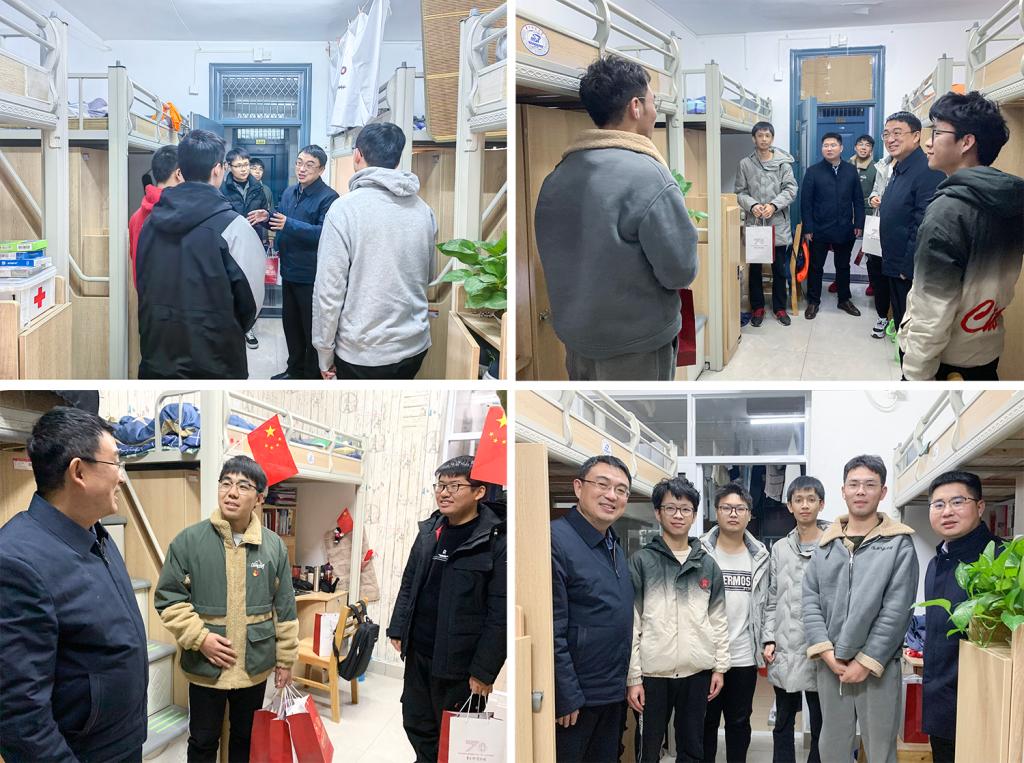 高亮一行首先深入韵苑15栋员工宿舍,与毕业年级员工进行近距离、亲切交流,详细了解同学们的身心状况、学习生活情况以及面临的困难,提醒大家遵守防疫规定,保持宿舍卫生,加强体育锻炼,并赠送围巾、发热贴等保暖用品。高亮结合自身当年考研经历与感受,鼓励考研的同学保持良好心态,坚持到底。对于保研的同学,高亮告诫同学们要积极与导师沟通,做好合理规划,保持科研激情,努力成长为拔尖创新人才。对求职的同学,高亮当场提供就业信息,并进行就业指导。