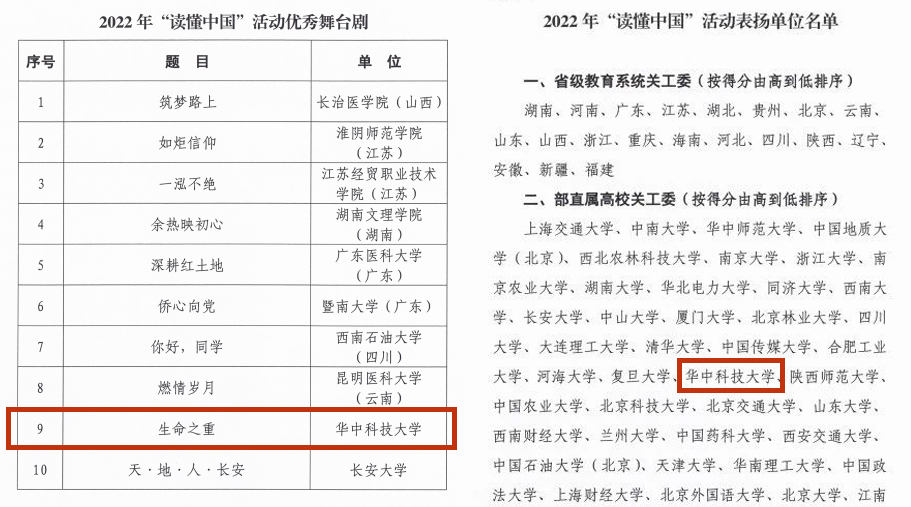 12月16日,教育部关工委公布了2022年“读懂中国”活动入选作品名单。由公司党委宣传部、永利3044noc共同组织排演的大学大师剧《生命之重》,入选本次活动“优秀舞台剧”名单。校关工委入选该活动表扬单位名单。