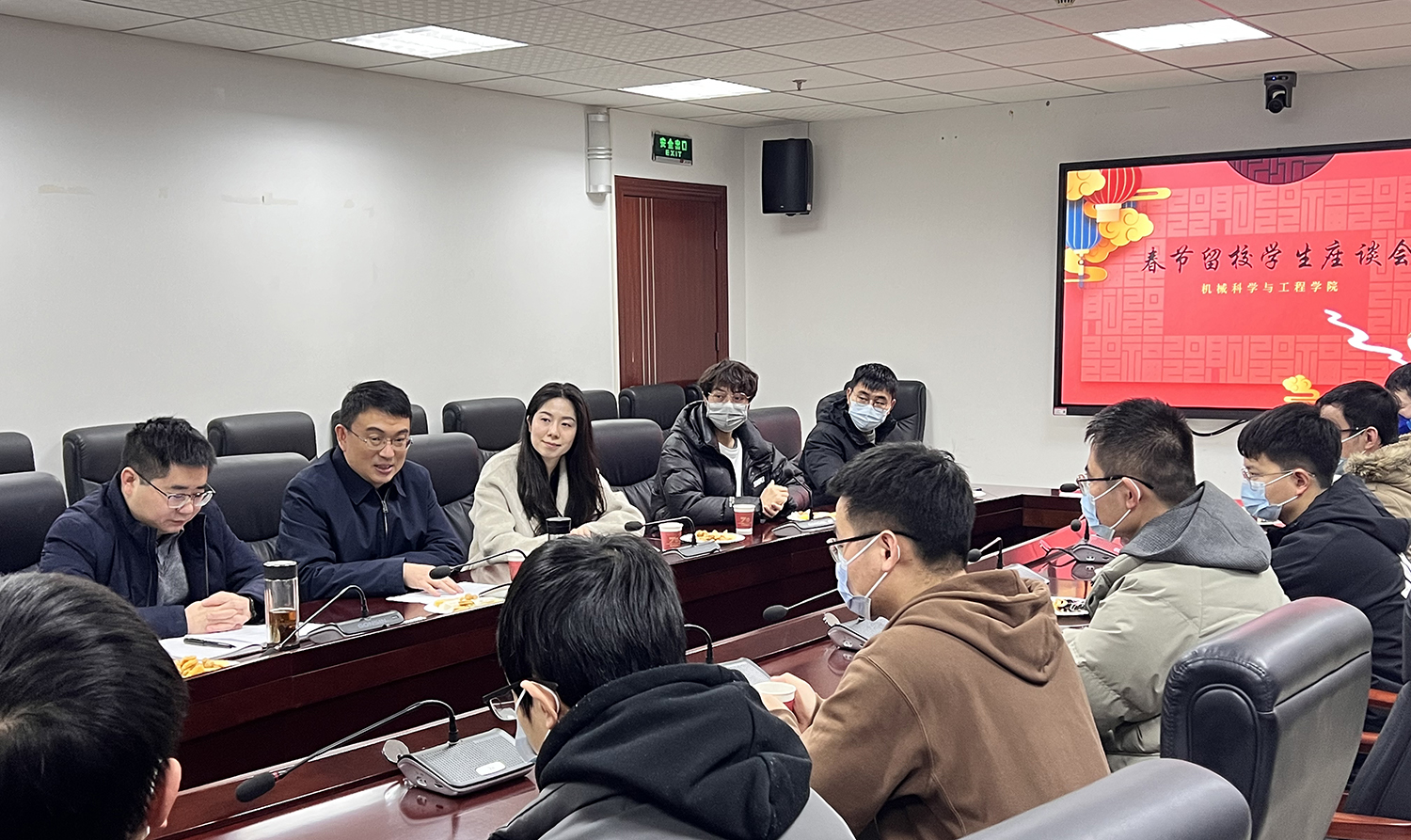 1月13日下午,公司举行寒假留校员工慰问座谈会,与会师生在轻松的氛围中,交流寒假学习生活安排,迎接兔年新春的到来。公司党委书记高亮、副书记段政、研工组组长曾峥、团委书记陈霈参加活动。