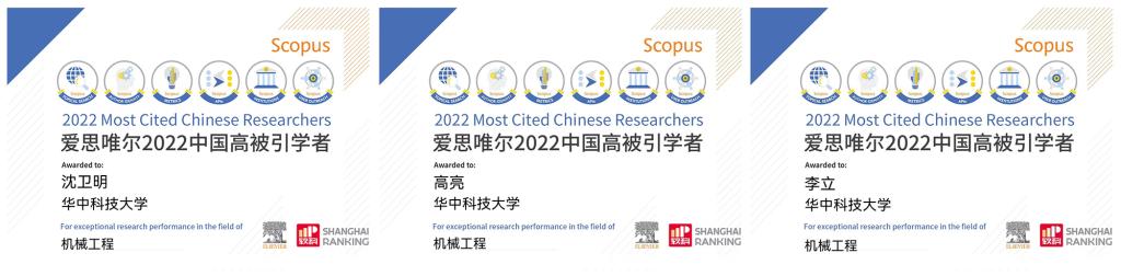3月28日,爱思唯尔(Elsevier)发布2022“中国高被引学者”(Highly Cited Chinese Researchers)榜单。上榜共计5216人,来自504所高校、企业及科研机构,覆盖了教育部10个学科领域、84个一级学科,机械工程学科有126名学者上榜。公司共有113名学者上榜,机械工程学科上榜学者有4名,其中公司沈卫明教授、高亮教授和李立教授入选。