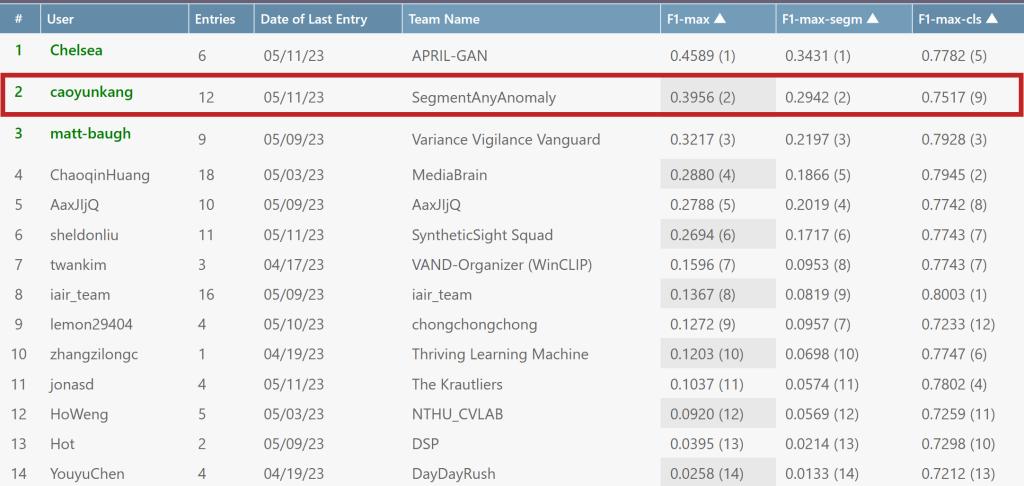 6月5日,2023年CVPR(IEEE Conference on Computer Vision and Pattern Recognition, IEEE国际计算机视觉与模式识别会议)VAND(Visual Anomaly and Novelty Detection,视觉异常和新颖性检测)Workshop零样本异常检测挑战赛正式宣布比赛结果。在公司沈卫明教授、高亮教授的指导下,“运筹与优化”团队2020级博士生曹云康、2020级硕士生孙晨、2018级本科生徐晓豪、2023级博士生程育奇组成的参赛队——“SegmentAnyAnomaly”(分割一切异常),取得了全球亚军的好成绩。本次比赛由亚马逊人工智能研究院发起,谷歌、因特尔、慕尼黑工业大学等企业、高校共同举办,吸引了来自海内外的众多参赛队伍。比赛围绕工业视觉检测的“冷启动”问题,旨在降低视觉异常检测方法对训练数据的依赖,更符合实际工业需求。