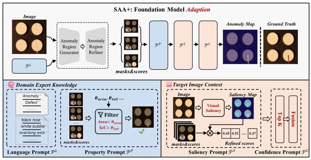 所提出的SAA+方法。该方法无需任何训练即可应用于任意产品的视觉检测中