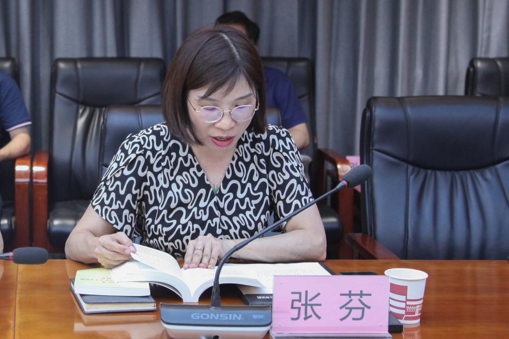 张芬为大家领学《习近平著作选读》第二卷“坚持底线思维,着力防范化解重大风险”、《习近平新时代中国特色社会主义思想学习纲要(2023年版)》“依靠顽强斗争打开事业发展新天地”。