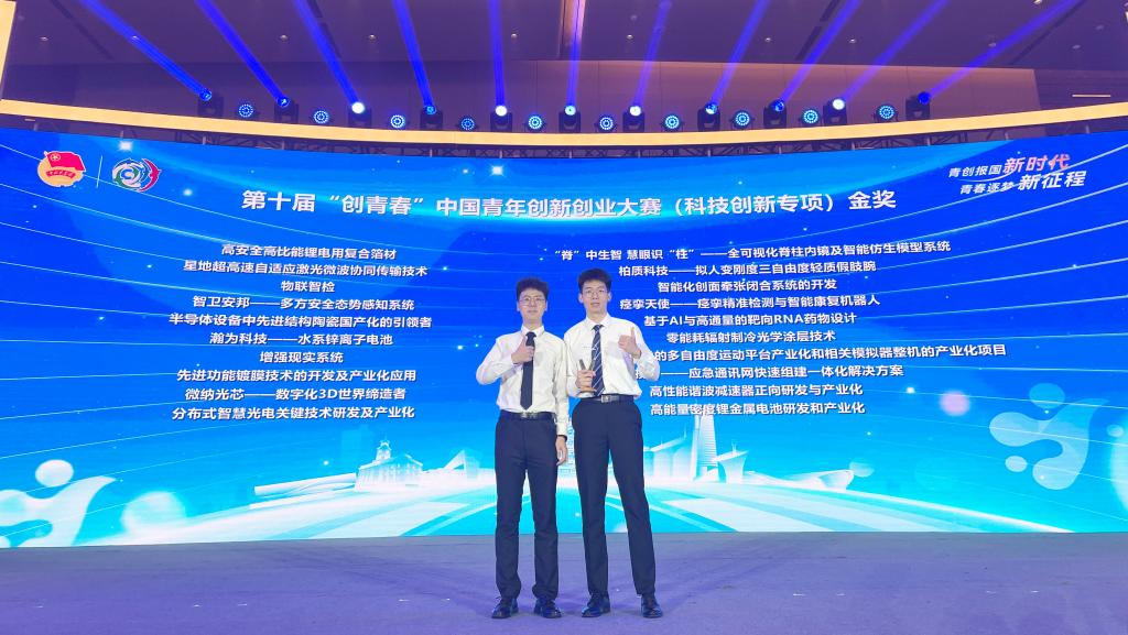 8月23日至25日,第十届“创青春”中国青年创新创业大赛(科技创新专项)决赛在武汉顺利举行。本次大赛中,由公司熊蔡华教授研究团队“穿戴式机器人”梁杰俊一老师指导,机械工程专业2021级研究生刘阳、2021级研究生邓亦骁、2022级研究生武家豪等同学完成的参赛项目“柏质科技——拟人变刚度三自由度轻质假肢腕”挺进决赛,最终斩获创新组全国金奖。此外,该项目参加了“投资面对面”活动与“光谷人才签约仪式”,为项目最终落地提供了机遇。