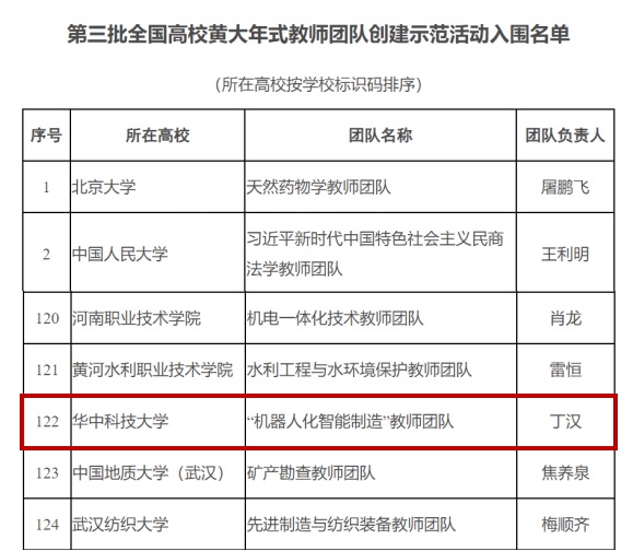 8月31日,教育部公布了第三批全国高校黄大年式教师团队创建示范活动入围名单,永利3044noc丁汉院士领衔“机器人化智能制造”教师团队入围。