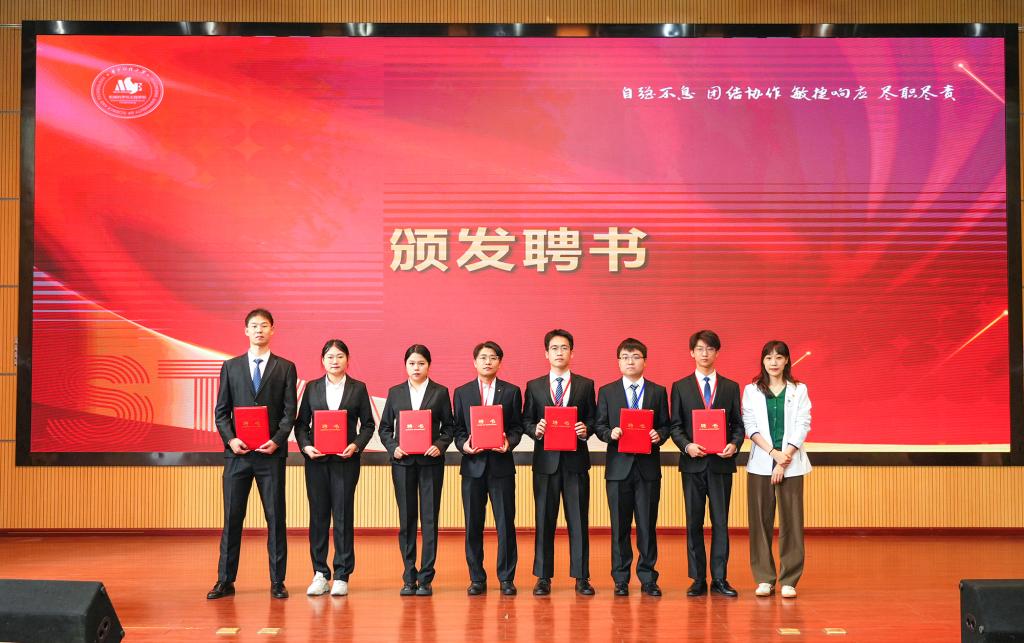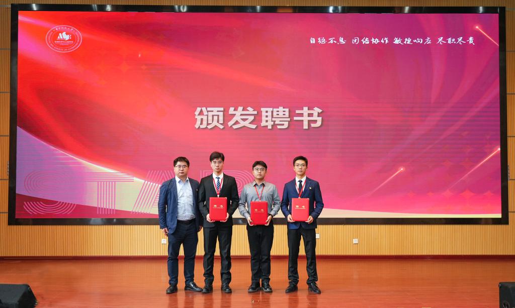 闫超、李宗霖向大会致辞,段政、丁鼎为公司第二十届研究生会主席团成员、部门负责人颁发聘书。
