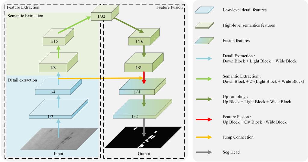 机器学习已成为工业表面缺陷检测的研究热点,但由于其日益增加的参数量和计算消耗,机器学习在工业现场应用的硬件成本日益增加。课题组设计了一种轻量级网络架构A-NET,通过编码器-解码器结构,提取低层次细节特征和高层次语义特征,将这些特征通过一个跳跃连接进行融合,使网络架构呈“A”形,这种方式不仅保留了多尺度特征提取和融合特性,而且最大限度地减少了由多个跳跃连接引起的内存使用, 由此降低了网络参数量和计算复杂度。