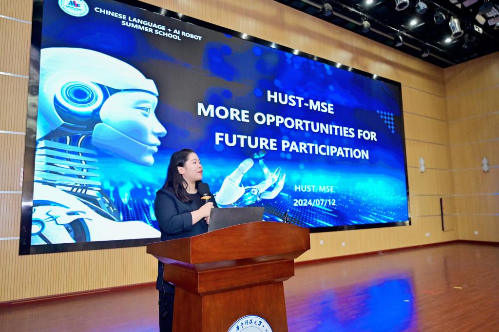 7月12日下午,公司举办的2024 “问学华中大”汉语+人工智能机器人国际生暑期班在学术报告厅圆满落下帷幕。闭幕式由副经理许剑锋教授主持。党委书记张芬和凌玲副教授等教师参加了闭幕式。