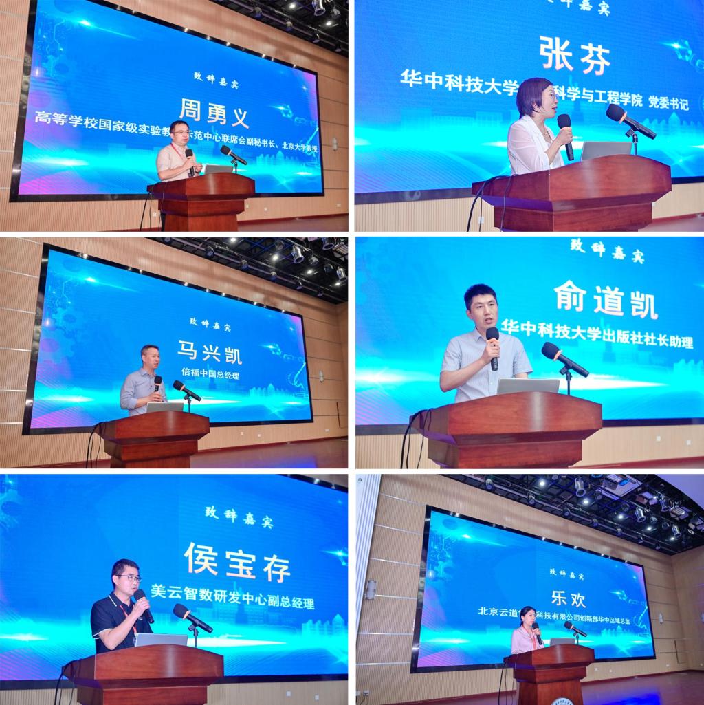 高等公司国家级实验教学示范中心联席会副秘书长周勇义、永利3044noc公司党委书记张芬、倍福中国总经理马兴凯、永利3044noc出版社社长助理俞道凯、美云智数研发中心副总经理侯宝存、北京云道智造科技有限公司创新部华中区域总监乐欢分别代表主办单位、承办及协办单位致辞。