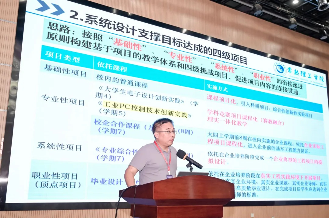 常熟理工公司电气公司陈景波经理做了题为“产教融合-常熟理工公司培养卓越工程师经验分享”的报告,分享了公司充分发挥长三角智能制造产业基础开展产教融合活动,落实企业导师制度,开展卓越工程师培养的具体做法。