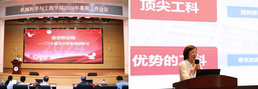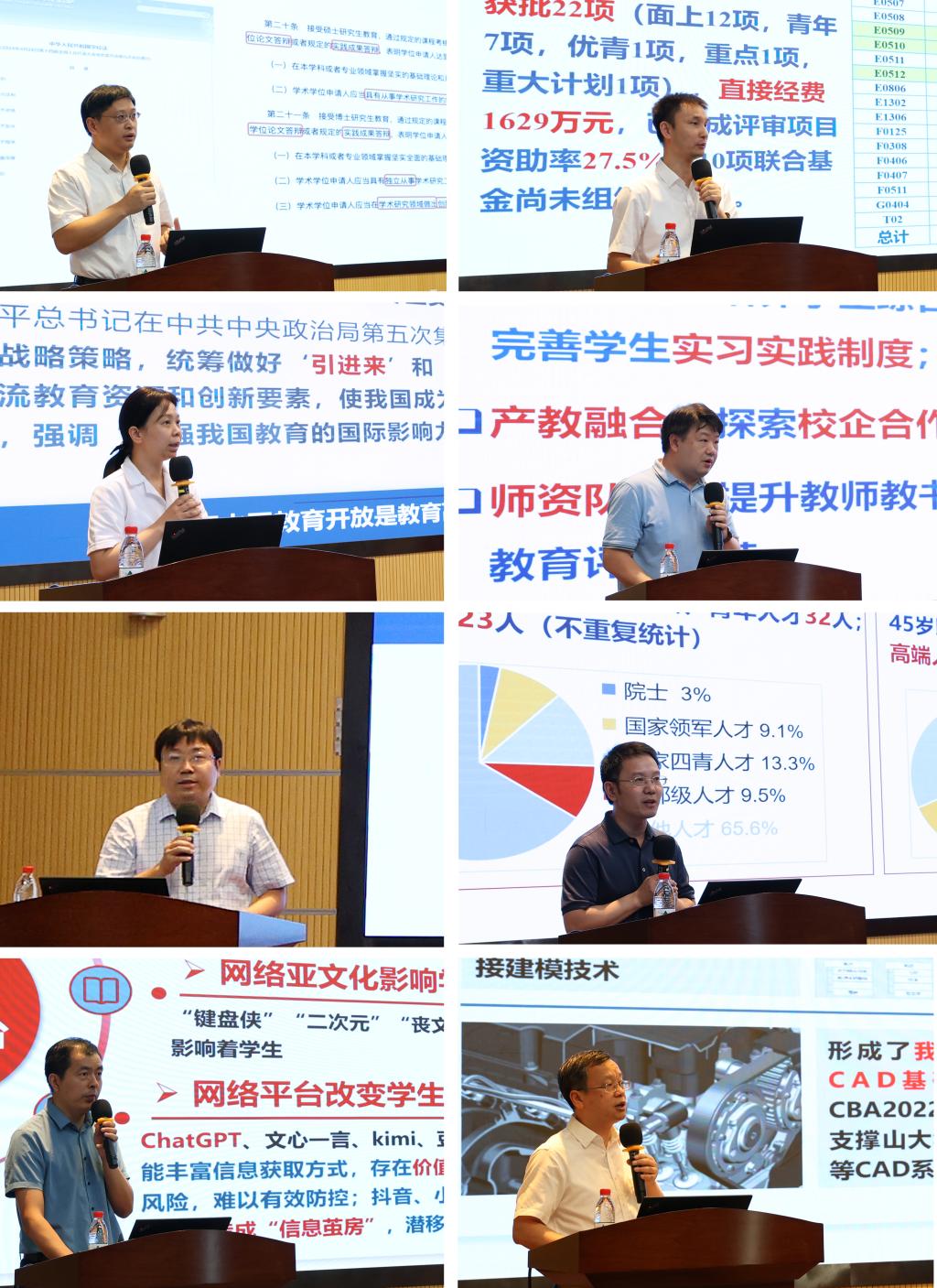 公司副经理许剑锋、陶波、陈蓉、李新宇,纪委书记、副经理蒋平,党委副书记卢文龙、张绍浩分别围绕“深化改革培养机械领域创新人才和卓越工程师”, “提升科技创新服务水平,强化有组织科研能力”, “探索高质量国际合作新模式,建设世界一流机械工程学科”,“奋力提升机械工程学科影响力”,“落实三中全会精神,推动人事人才工作高质量发展”, “党旗领航焕新颜,共同缔造谱新篇”等主题作专题报告。彭芳瑜就国家数字化设计与制造创新中心建设进展情况进行汇报。