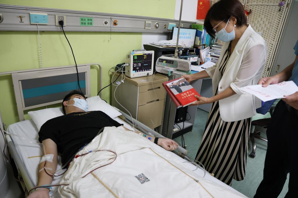 公司党委书记张芬,副书记张绍浩,研究生辅导员方翰和王英杰代表公司前往医院探望。张芬书记详细询问了马金龙的身体情况,对他的奉献精神给予高度肯定。她指出,马金龙同学的爱心之举不仅为受助者带来了生的希望,还挽救了一个家庭,是公司员工典型代表,广大学子要向他的奉献精神学习。张芬书记还向马金龙赠送书籍《习近平与老员工朋友们》《往事钩沉》和慰问品。