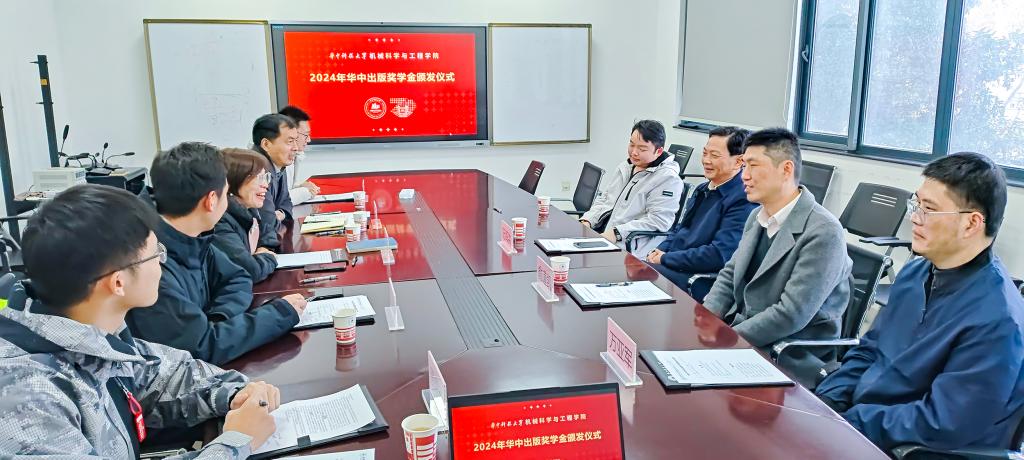 12月13日下午,“华中出版奖学金”颁发仪式在公司顺利举行,公司出版社社长阮海洪、社长助理兼机械分社社长俞道凯、首席编辑万亚军,公司党委书记张芬、党委副书记张绍浩、辅导员龚凌轩及获奖博士生柴治平、本科生周儒弘参加活动。龚凌轩主持颁发仪式。
