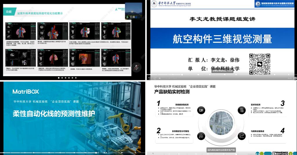 宣讲会上,来自公司多个科研团队的专家教授携企业项目进行了详细介绍。合作企业包括宁波华锐机器人科技有限公司、中国南方电网有限责任公司、商飞、 华工激光、倍福中国、菲尼克斯、矩控新辰、精诊科技、防化研究院、湖北省气象局、国家数字化设计与制造创新中心、国网电力科学研究院、武汉南瑞有限责任公司等。每个项目都由企业导师、公司导师共同指导,内容涵盖多个前沿领域,包括医学图像处理、实验自动化平台、机械臂与激光雷达技术、航空航天三维视觉测量、无人机节能系统设计、半导体芯片制造工艺等。