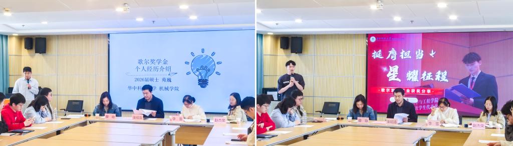 曾峥介绍了2024年歌尔奖学金评选流程,经个人申请,公司评审委员会评议,评选出14名研究生和6名本科生。研究生获奖代表、2023级硕士生苑巍,本科生获奖代表、2022级本科生王慧康分别分享了科研学习、员工工作、实践活动等方面的成绩,并表示将歌尔的关心支持转化为动力,深耕专业技能,努力成为具备创新精神和实践能力的高素质新工科人才。获奖同学就实习实践、职业规划等方面与在座老师亲切交流。李雪、赵杰荣、张绍浩为获奖员工颁奖。