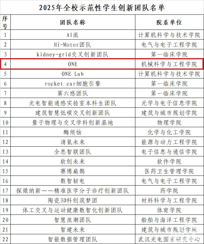 ONE团队是本科生创新团队,于2013年4月成立,挂靠由高亮教授负责的“运筹与优化”研究团队,由李新宇教授、张春江副教授和高艺平助理研究员指导。团队秉持“ALL FOR ONE,ONE FOR ALL”理念,以冲刺A类赛事国家一等奖为目标,制定了22页培养计划,为各年级本科生成员明确学习路径,同时提供相关课题组与企业项目作为团队成员的科研实践平台,旨在培养融合技术创新、数字素养、产品素养的复合型人才。