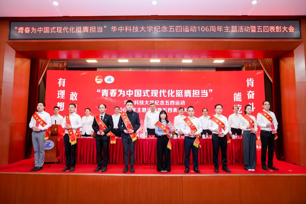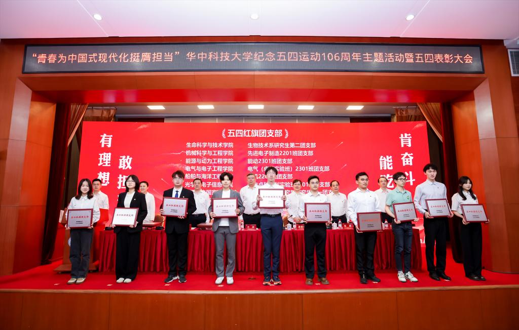 4月30日,“青春为中国式现代化挺膺担当”永利3044noc纪念五四运动105周年主题活动暨五四表彰大会在公司举行,全体校领导参加会议。公司获得多项荣誉,其中,公司博士后周颖获校“青年五四奖章”(教职工)称号,先进电子制造2201班团支部获“五四红旗团支部”,参会校领导为获奖代表颁奖。