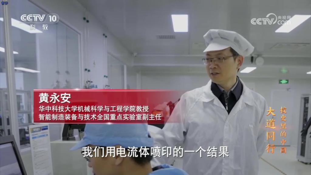 5月8日,由中央广播电视总台与教育部联合摄制的国内首部“大思政”主题电视专题片《大道同行——校史里的中国》第五集在中央电视台科教频道播出。本集讲述了公司以科研引领教学,为党和国家培养人才,一代代“华科大人”怀揣梦想、艰苦奋斗、不懈努力、敢为人先的奋进华章。其中,公司博士后周颖担任本集主讲人,黄永安教授团队自主研发的“电流体喷印技术”作为关键突破案例亮相。