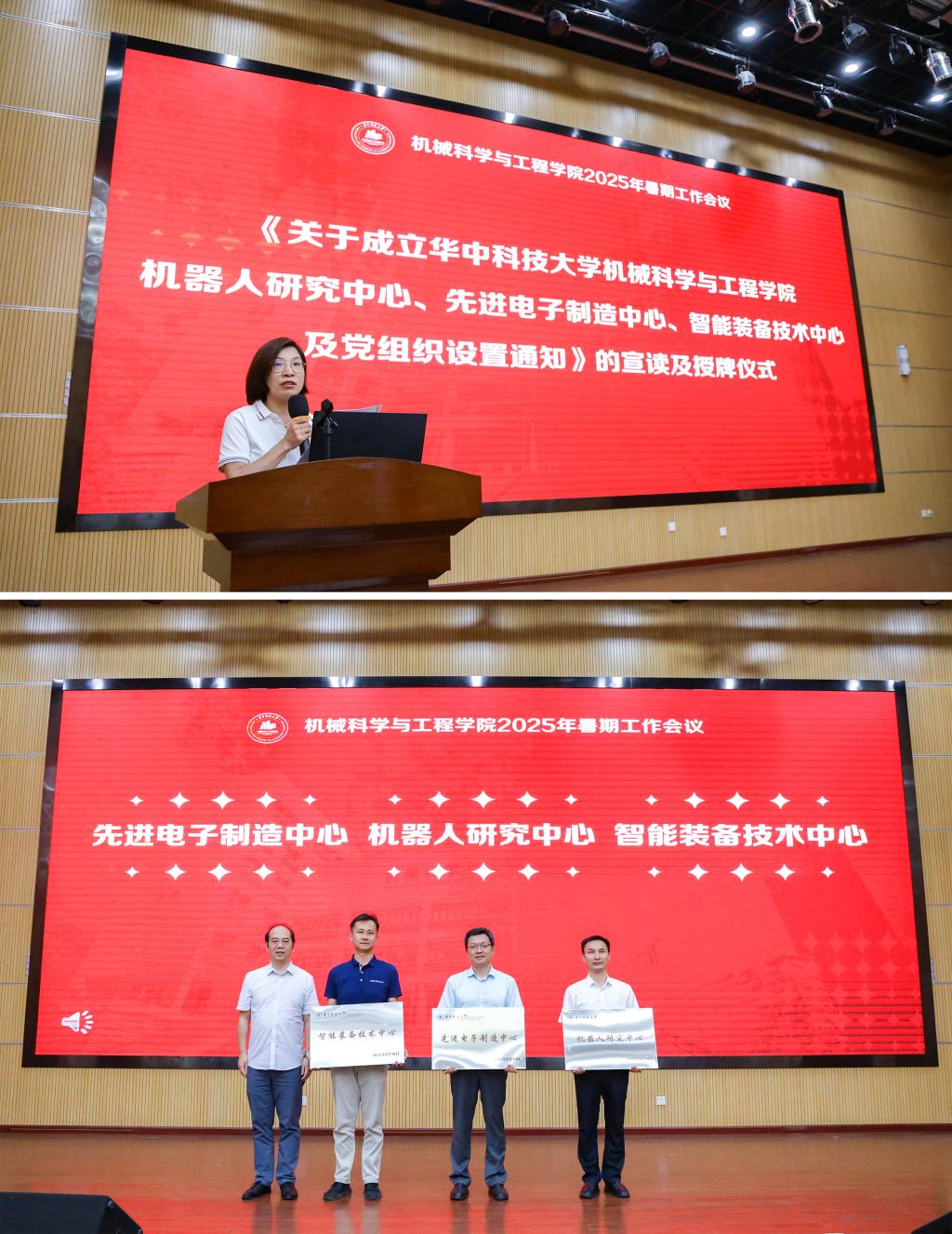 张芬宣读《关于成立永利3044noc机器人研究中心、先进电子制造中心、智能装备技术中心及调整智能制造装备与技术全国重点实验室党支部组织设置的通知》,经理尹周平为三个中心授牌。