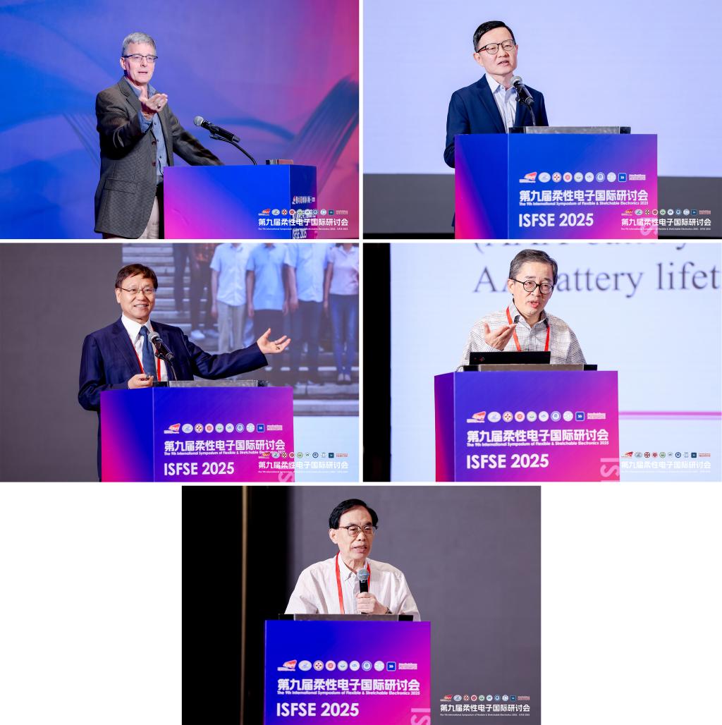 来自美国西北大学的John A. Rogers教授、新加坡国立大学的Chwee Teck Lim教授、深圳大学的张学记教授、美国西北大学的黄永刚教授、香港中文大学的张元亭教授分别作了题为“Flexible Bioelectronic Systems as Epidermal and Organoid Interfaces”“From Skin to Within: The Next Frontier of Non-invasive and Mechanointelligent Biosensing”“智能传感与数字生命——无尽的科学前沿”“Bioelastic State Recovery for Haptic Sensory Substitution”“基于可穿戴动脉血压图技术的个性化智能高血压管理系统” 的大会报告。报告视野开阔、内涵丰富,为与会学者呈现了柔性电子领域的无限可能,也为未来跨学科研究提供了新的启发。
