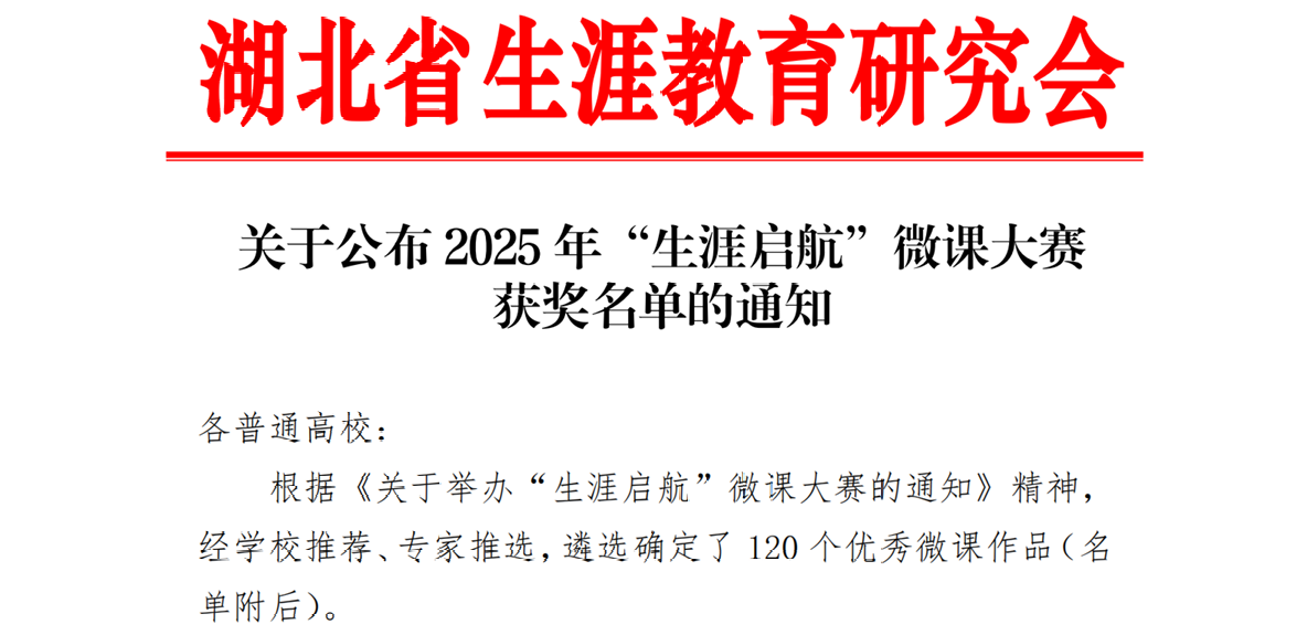 9月18日,湖北省生涯教育研究会公布了2025年“生涯启航”微课大赛获奖名单,公司本科生辅导员龚凌轩作品《3分钟面试表达能力提升》荣获一等奖、王英杰作品《解锁团队角色:找到你的专属角色定位》荣获三等奖。