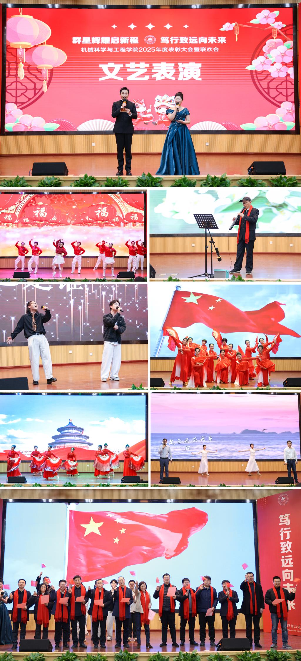 随后举行的联欢活动,节目精彩纷呈。教职工带来的舞蹈《新年快乐》喜气洋洋,离退休教师的电吹管独奏《茉莉花》轻柔悠扬,员工演绎歌曲《不为谁而作的歌》纯粹热情,离退休教师的舞蹈《五星红旗》大气庄严,国家数字化设计与制造创新中心的舞蹈《万疆》气势恢弘,教职工的歌舞表演《一生有你》温暖深情,最后师生合唱《歌唱祖国》,以充满活力和斗志昂扬的演出为全体师生献上深深的祝愿。