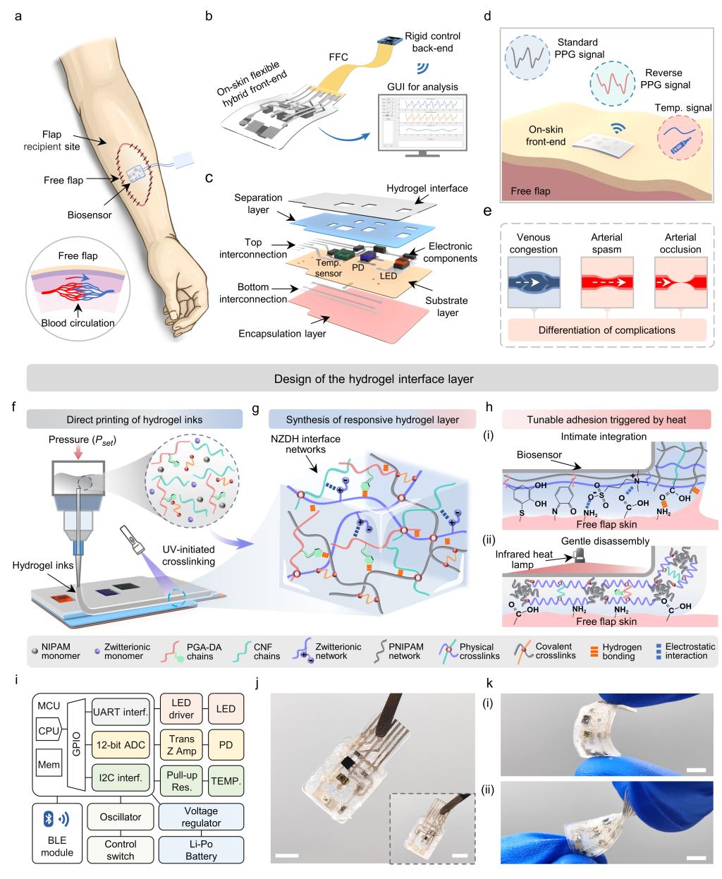1月29日,国际权威期刊《National Science Review》刊发公司吴豪教授、尹周平院士团队在柔性电子医工交叉领域的新成果,题为“A soft biosensor with printable responsive hydrogel interfaces for detection and differentiation of blood circulation complications(具有可打印响应型水凝胶界面的柔性生物传感器,用于检测及区分血液循环并发症)”。公司2020级博士生仇裕淇、2022级博士生杨淦光为论文共同第一作者,吴豪教授为通讯作者,公司同济医公司附属协和医院副主任医师刘玉田、新加坡国立大学教授吴昌盛为共同通讯作者,尹周平院士等为共同作者。