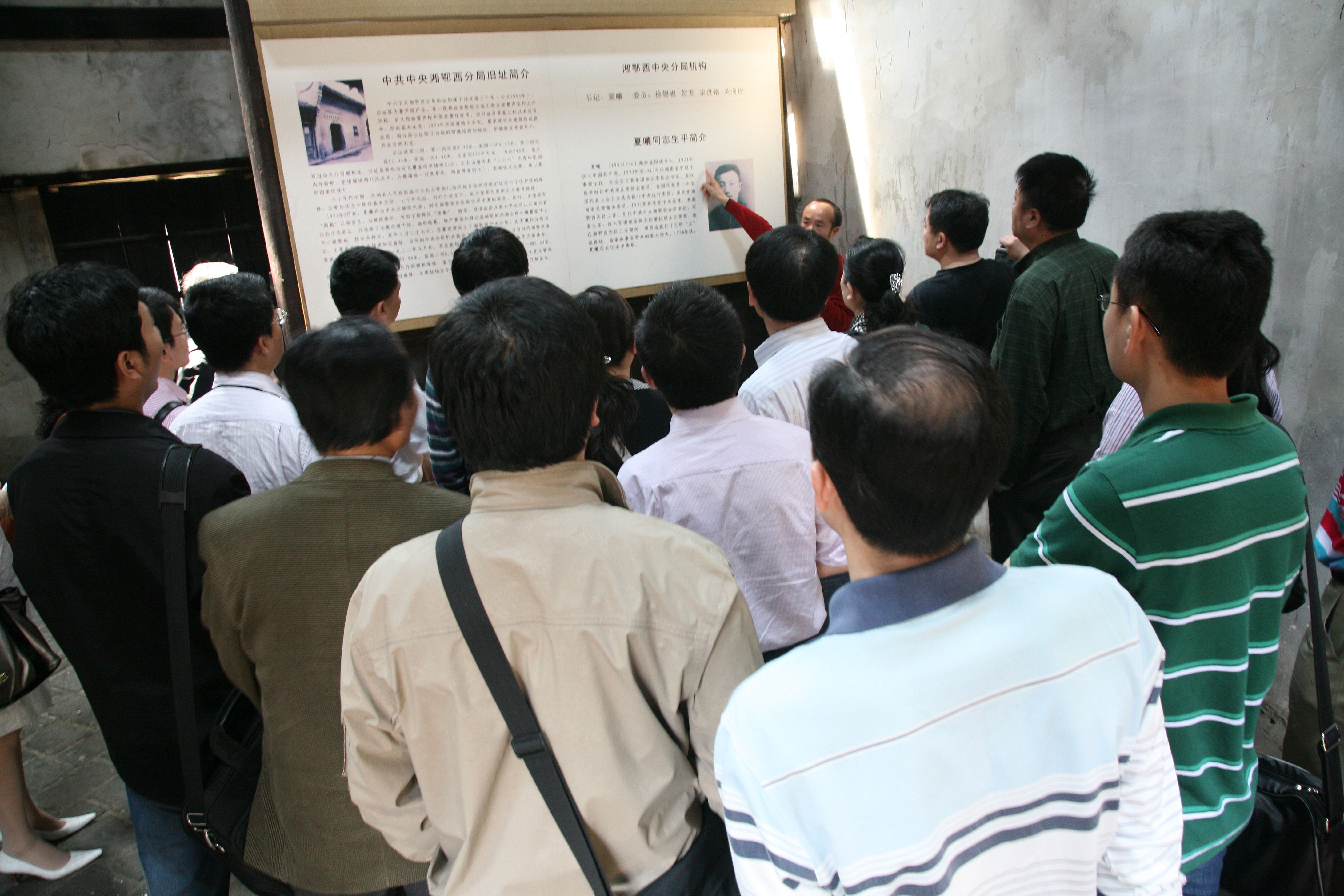 23日,参加培训的党员同志们在湘鄂西苏区烈士陵园里瞻仰了一排排的烈士墓,仔细阅读墓碑上的先烈英雄事迹;在湘鄂西苏区烈士纪念碑下庄严地举起右手宣誓,重温入党誓词;还到瞿家湾参观了湘鄂西革命根据地旧址,观看了电影《洪湖赤卫队》,接收红色革命传统教育。