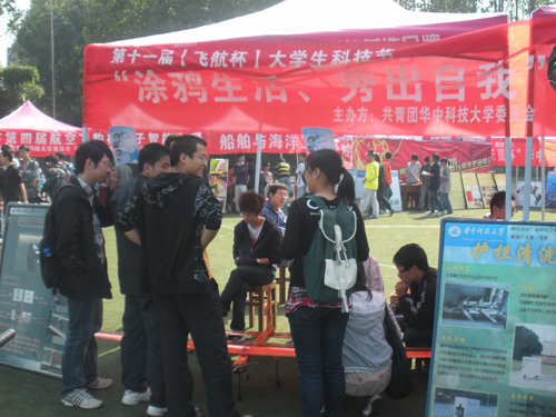 感兴趣同学在好奇欣赏,参展同学也自豪的介绍展品