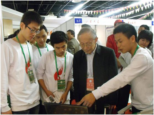 在比赛期间,杨叔子院士、公司常务副董事长林萍华教授百忙之中,先后来到公司员工的展台前详细询问同学们的准备情况,并预祝同学们本次比赛取得好成绩,同学们深受鼓舞。永利3044noc副经理吴波教授也专程为同学们助阵,鼓励大家发挥出自己的最佳水平。