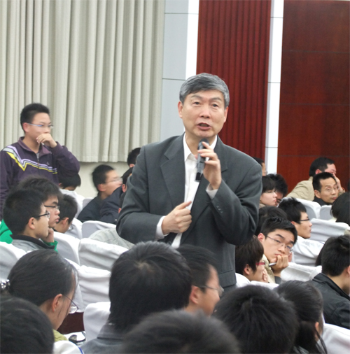 随后是同学们与根叔的对话环节,同学们纷纷踊跃举手,希望能与根叔面对面交流。同学们的问题五花八门,而根叔睿智却不乏幽默的回答总能引起同学们的掌声与笑声。与当被问及身为一个董事长面对困难时是怎样的心态时,根叔微笑着回答了一个让全场欢呼的词—“enjoy”,认为解决困难丰富了做董事长的乐趣;当被问到将来想给华科留下什么时,根叔毫不犹豫的答道:“自由氛围,敢于批判的自由氛围!”。其中就有一位我们永利3044noc的同学就公司的一些现状向根叔提出了几点建议,如希望两校区图书馆能借还相通,对此,根叔给我们谈起他在美国留学的类似经历,表示举双手赞成,并承诺一定会尽早解决;还有的同学抱怨公司机动车辆太多,根叔也表示公司正在采取一系列措施解决相关问题。