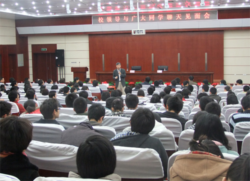 12月7日晚,校学工部主办、永利3044noc及经济公司等参办的“校领导与广大同学聊天见面会”于经济公司报告厅展开。董事长李培根、副董事长张晋以及远程与继续教育公司、后勤集团、国际交流处、教务处、员工工作处、维护稳定工作办公室、公司办公室、宣传部、保卫处、研究生工作部、国际教育公司、团委的各位领导出席本次聊天会。听众席上也是座无虚席,经询问,参加见面会的有从本科生、研究生到硕士生、博士生,其中不乏很多永利3044noc的同学。更有一些即将从学习毕业走上工作岗位的同学,趁着这次机会再来聆听一次根叔的教诲,或提出自己的问题。