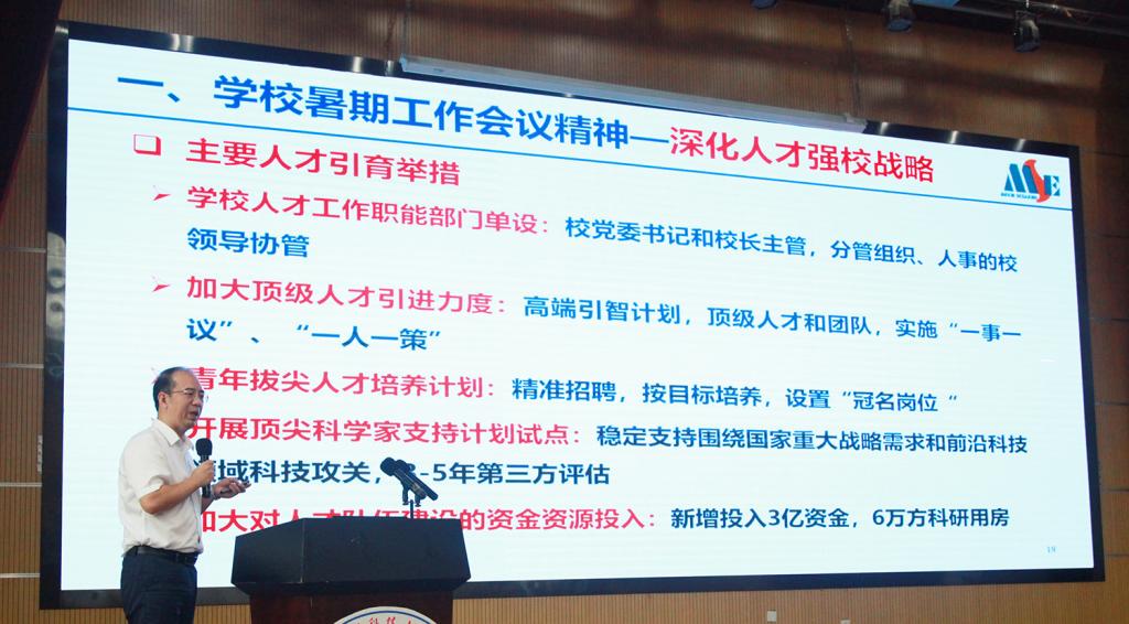 公司经理尹周平做了“谋新篇开新局,扎实推进新一轮‘双一流’建设”主题报告。报告首先对习近平总书记“七一”讲话做了再次学习,对上半年迎接建党100周年、迎接中央巡视和校内巡察整改、党史学习教育、党建引领和意识形态责任制、师德师风和立德树人等各项工作做了强调和部署,对公司暑期工作会的精神进行了传达,对双一流建设的概况进行了介绍。随后对2021上半年工作进行了总结,对下半年工作进行了部署。最后通过详实的数据对新一轮“双一流”建设方案的编制进行了思考。