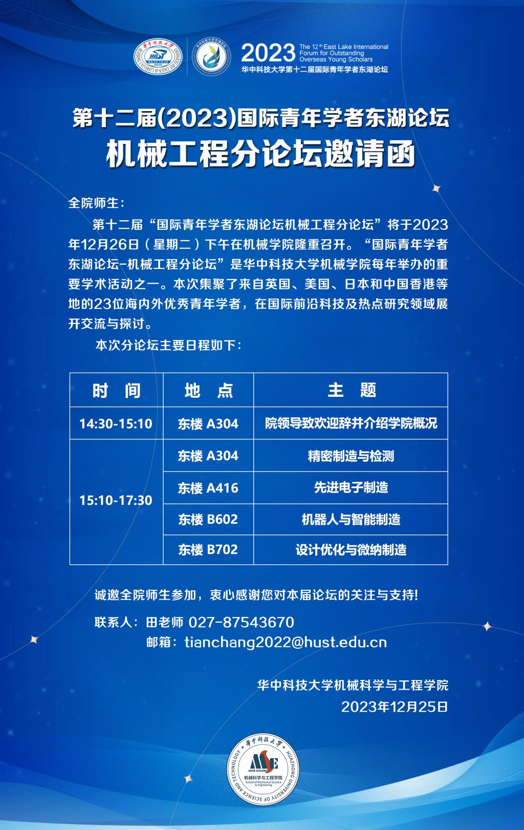第十二届(2023)国际青年学者东湖论坛机械工程分论坛邀请函