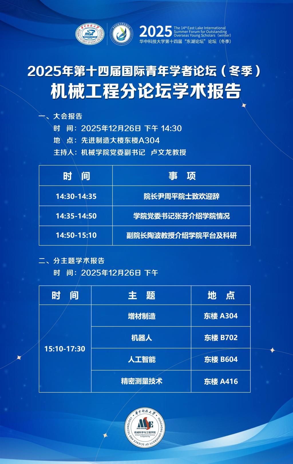 邀请函丨2025年第十四届东湖论坛(冬季)机械工程分论坛